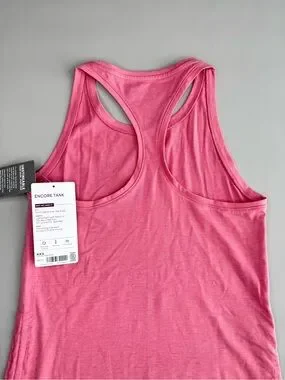 New with tags, Athleta Encore Tank in vibrant pink, designed in lightweight breathable performance fabric with a racerback silhouette and adjustable ruched sides, perfect for workouts, travel, and everyday athleisure with moisture-wicking comfort.