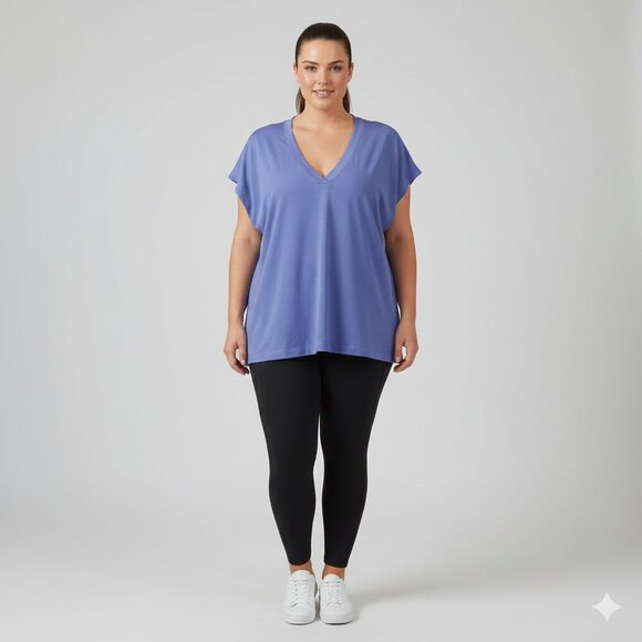 ATHLETA "Essence Away From Body" Short Sleeve V-Neck Split Back Tee, Blue - 3X