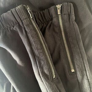 Great quality joggers from ATHLETA. Zipper pockets and zipper at the ankles. Great for travel! Excellent condition. Color is black, but is more of a washed black, not true black.
