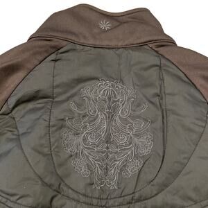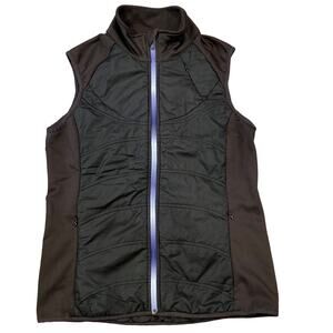 ATHLETA Flashpack Embroidered Black Purple Puff Vest M