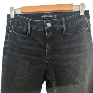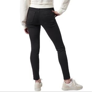 Sits at natural waist, fitted, fits slim through the leg and eases up at the calf. Innovative sculptek fiber stretches every way you do then snaps back into place. 5 pocket design.