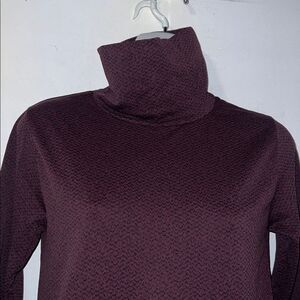 For training in cold weather climate; feels seamless construction for maximum comfort and minimal chafing; the best are the thumbholes hold sleeves in place and keep warmth in. Fitted next to the body Regular length, hits at low hip. Machine wash and dry. Spiced Cabernet color with black marled detail. Nylon spandex blend. Excellent condition. Size medium, measures 17” from armpit to armpit and 25.5”from top of shoulder to bottom hem.