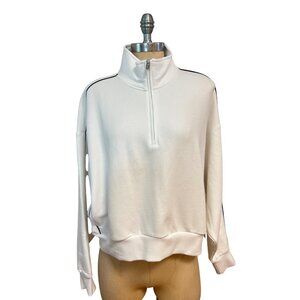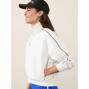 ATHLETA Forever Fleece 1/2 Zip High Hip Piping Sweatshirt WHITE