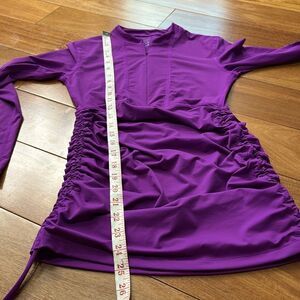 ATHLETA Fuchsia Ruched Half Zip Long Sleeves Rash Guard Swimsuit Top Size XS in excellent condition.
