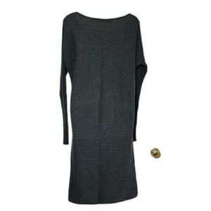 Are you looking forward to fall and cooler weather? Add this gray rib knit dress to your wardrobe, it's versatile and easily dressed up or down, casual or career with your tights and boots or leggings and uggs! Features an envelope neckline and long sleeves. Made of machine washable 100% extra fine merino wool. In excellent condition