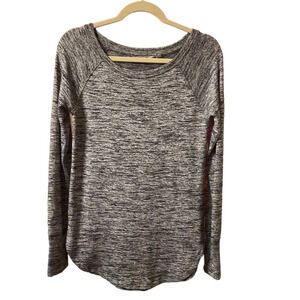 Pre owned like new. Dark gray with black woven through. Super soft long sleeve workout top. WOMENS size xs.