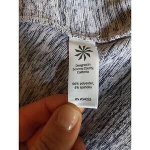 Athleta sweatshirt in heathered gray. Features side zip details and relaxed fit perfect for workouts or casual wear. Soft polyester-spandex blend with stretch for comfort and movement. Designed in Sonoma County, California.