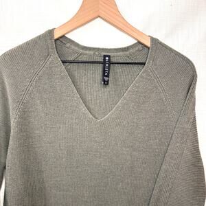 ATHLETA Hanover Wool Sweater Size S V-neck Green Ribbed Pullover Oversized Cozy
