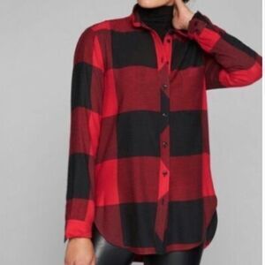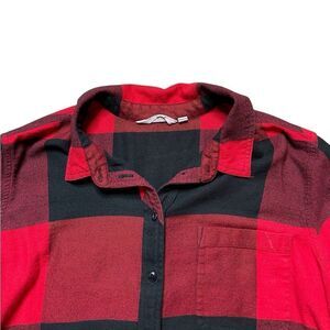 ATHLETA Heat Tech Flannel Button Down Red Black Size Large