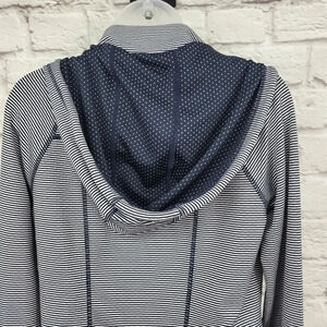 ATHLETA | Heavenly Hail Blue White Striped Polka Dot Hoodie Sz Small