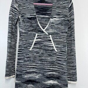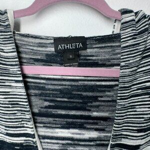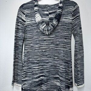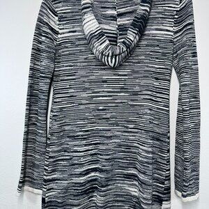 ATHLETA Hooded Long Sleeve Sweater Marbled Black White Kangaroo Pocket Sz Small