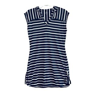ATHLETA Hooded Wick It Cover Up Dress Navy and White Striped Size Small FLAW