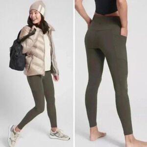 Size 1X. Athleta inclination moto tight leggings in arbor olive color. Excellent used condition with side pockets. Reasonable offers welcome!