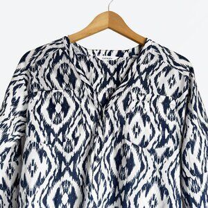 ATHLETA Ikat Print Silk Tunic Swim Cover-Up Long Sleeve Top - XXS