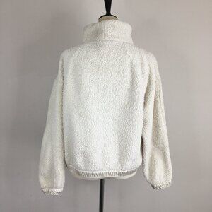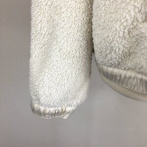 ATHLETA Ivory Asym Zip Collar Satin Trim Fur Fluffy Pullover Jacket