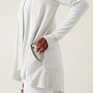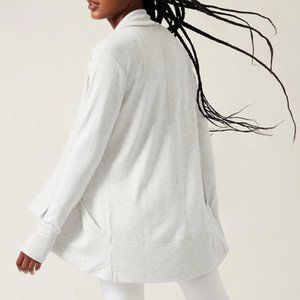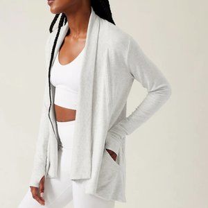 ATHLETA LIGHT HEATHER GREY POCKETS NIRVANA PRANAYAMA WRAP CARDIGAN
