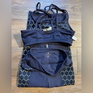 ATHLETA Leggings and top set pants XS top S navy w/ white details
