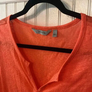 ATHLETA Linen Newport Henley Tunic Coral Orange SM