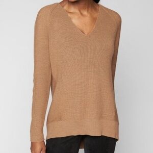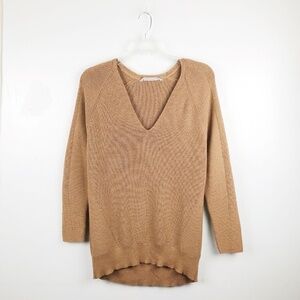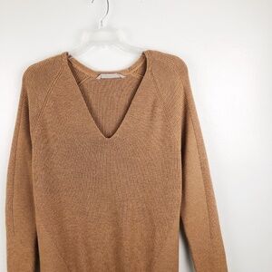 🌻 ATHLETA Merino Knit V Neck Tan Brown Sweater Top Medium