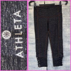 ATHLETA Mind Over Mat Capri Cut Out Strappy Lattice Calf Design Grey/Brown XXS