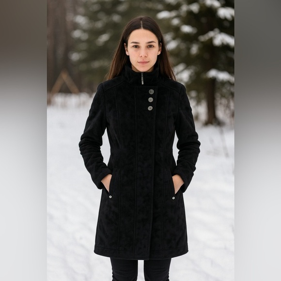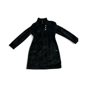 It’s a longline fleece / plush jacket / coat style, extending past the hips or to mid-thigh (or longer). Some listings call it a “long coat” or “longline fleece.”