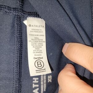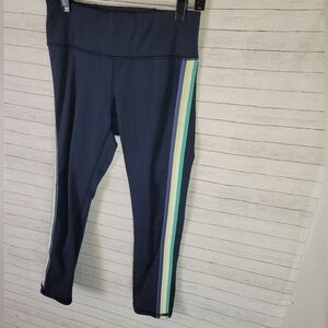 ATHLETA NAVY BLUE CROPPED LEGGINGS W SIDE COLOR STRIPING, SZ XS