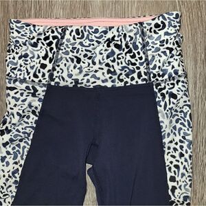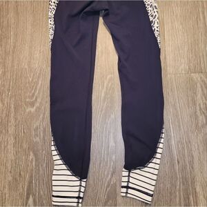 ATHLETA Navy Blue Leggings Stripe Leopard Print Size XXS