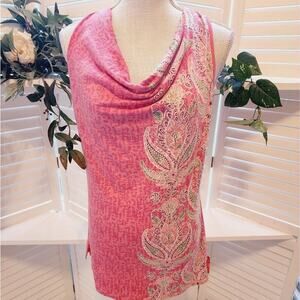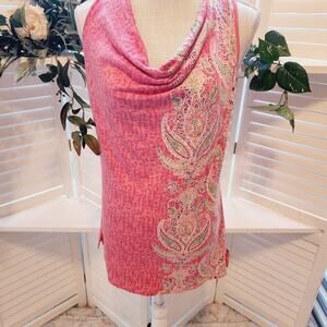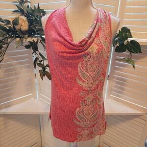 ATHLETA ORANGE PAISLEY TUNIC WITH DROP DOWN COLLAR