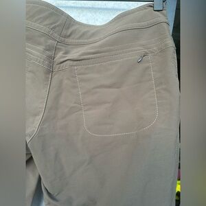Nice condition, flared bootcut style with low rise. Zip pocket by the knee area. Nylon stretch. Please Stylish tan casual pants with a sleek design. Perfect for everyday wear.