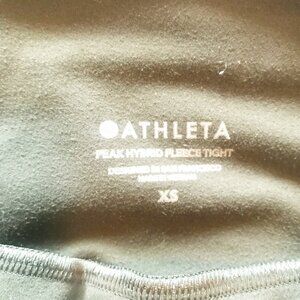 Athleta Peak Hybrid Fleece Tight in Peat green. 3 zip pockets, pull on elastic waist, inner drawstring, size XS, nylon spandex blend, wear/piling to fabric-see photos. Measurements in photos. Smoke and pet free home.