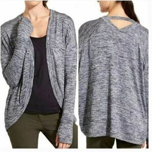 Athleta Pose Wrap Cardigan Sweater Open Front in Marled Gray