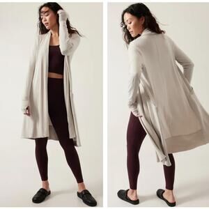 ATHLETA Pranayama Long Wrap Abalone Grey Cream Neutral Sz S $99 {LL15}