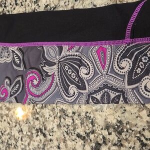 Elevate your activewear with this stylish Athleta top. Featuring a striking black and purple paisley pattern, this top is perfect for workouts or casual outings. Can be used as a rash guard as well. Experience comfort and style with Athleta.