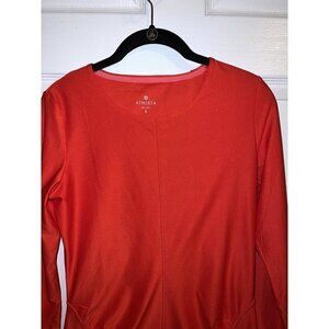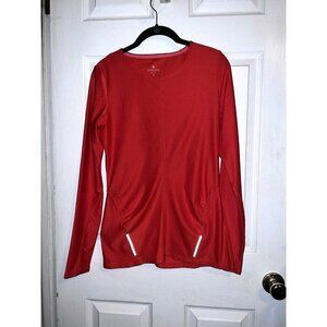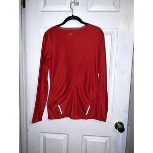 ATHLETA Red Long Sleeve Top Reflective Pullover Athletic Running Zipper Pocket S