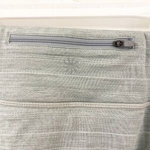 Athleta Stripe Swagger Tiered Skort This Athleta Stripe Swagger skort skirt is perfect for any active occasion. The pull-on closure and elastic waist make it easy to wear, while the moisture-wicking and breathable features ensure you stay comfortable during your workout. The striped pattern adds a touch of style to this skort, which is made from a blend of polyester and spandex. • Size XL • Elastic waistband with pull closure • Zipper pocket on back waistband • Mesh shorts underneath skirt • Tiered skirt Approx measurements 14” length 32” waist