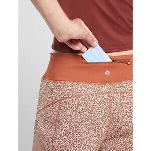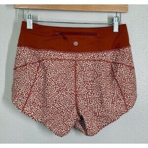 ATHLETA Run With It Printed 3.5” Shorts WOMENS XXS Micro Cheetah Rust Orange UT