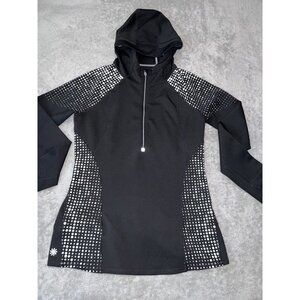 ATHLETA Running Wild Hoodie 2.0 Dot Black 1/4 Zipper Thumbhol 152554 Sz S