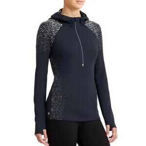 ATHLETA Running Wild Hoodie 2.0 Womens Small Navy Dot Long Sleeve Pullover Shirt