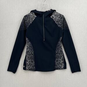 ATHLETA Shirt Womens Small Navy White Running Wild Hoodie 2.0 Dot Long Sleeve