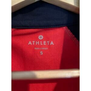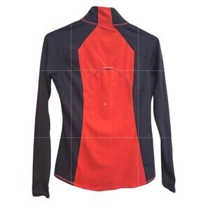 ATHLETA Running Wild Shirt Red Navy Blue Fall Winter Thumbholes 1/2 zip SMALL