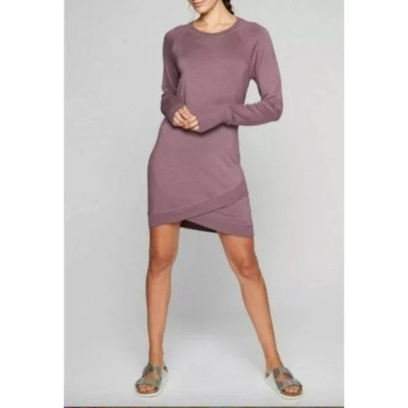 ATHLETA S Dusty Plum Crisscross Sweatshirt Dress Asymmetrical Modal