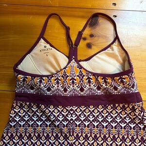 ATHLETA S Magenta Pink Red Bombay Printed Shorebreak Swim Dress