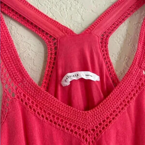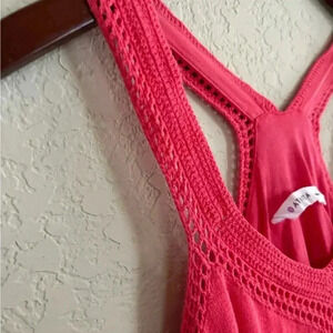 ATHLETA Shiloh Crochet Knit Racer Back Dress In Coral Pink Size L