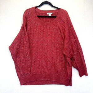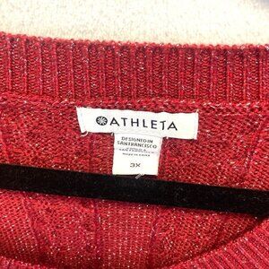 ATHLETA Shimmer Red Silver Cable Knit Sweater Womens 3X Crew Holiday Crossroads