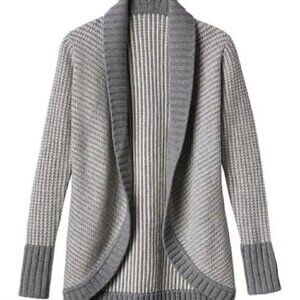 ATHLETA Sierra Wrap Cream Ivory Grey Striped Open WOOL CASHMERE Cardigan Sweater