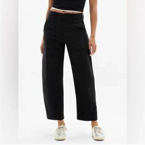 Athleta Skyline High Rise Barrel Leg Pant in size 10. The pants are pre-owned adn there are no stains or rips. I wore these one and I am seling them becaue I do not wear really wear black pants. EUC.