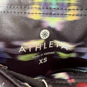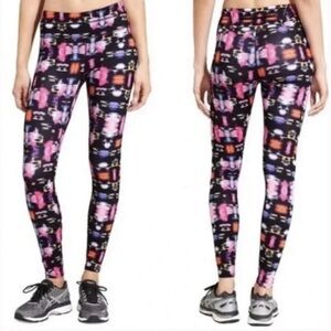 Athleta Speed Sonar Full Length Leggings in printed pattern. Back zipper detail. Exposed seams.