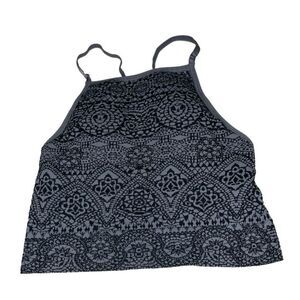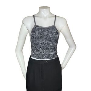 ATHLETA Sports Bra Top Cropped Black Grey Abstract Print Adjustable Strap Size S