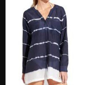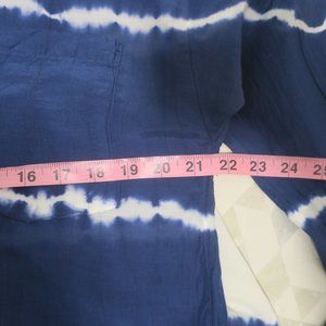 ATHLETA TIE DYE STRIPE KAFTAN SHIRT coverup blue white button silk beach LARGE