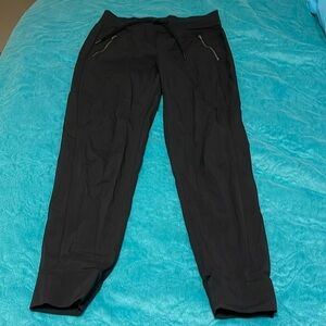 ATHLETA TREKKIE NORTH JOGGER women’s size 6T black, 3 zipper pockets tie waist drawstring, cuffed hem.